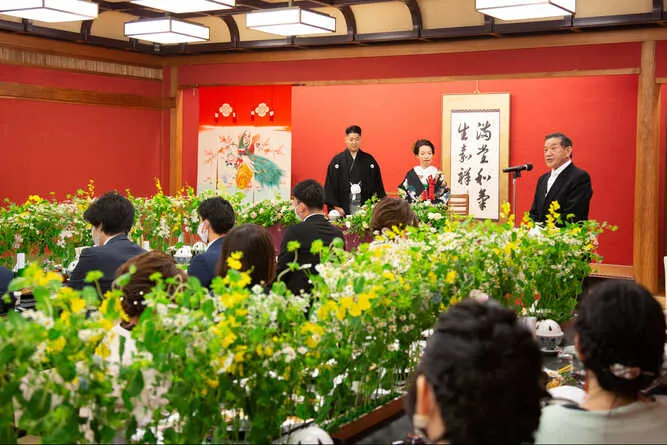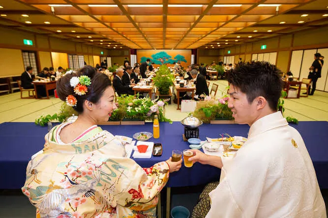結婚式にお招きするゲストへのご案内とお返事をいただく期間をベースに3〜4ヶ月を結婚式準備期間とお考えください。参列ご人数が2名から20名(招待状等は無く出欠ご確認いただける)であれば旅館の予約が取れれば10日前後でご準備することも可能です。(最短ご準備を希望されるお客様への対応もお受けしています)