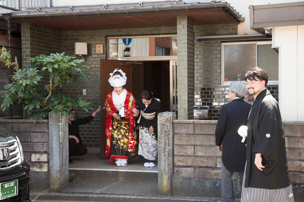 新郎新婦のおふたりは先に旅館に到着。客室でゆったりと花嫁支度します。