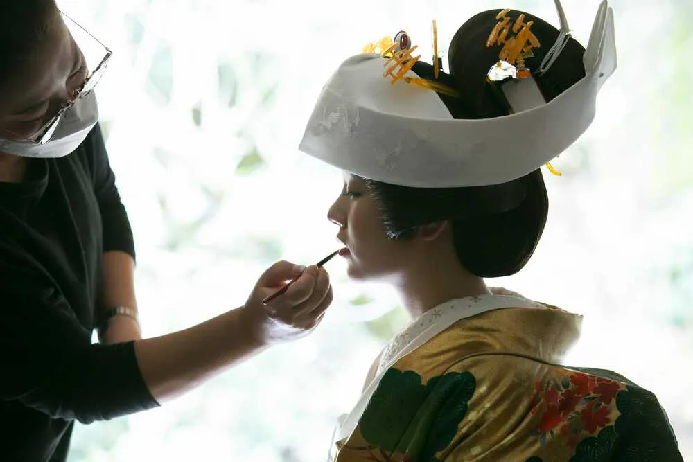 客室にて和装の支度。親族の着付け等もあわせて館内でご準備